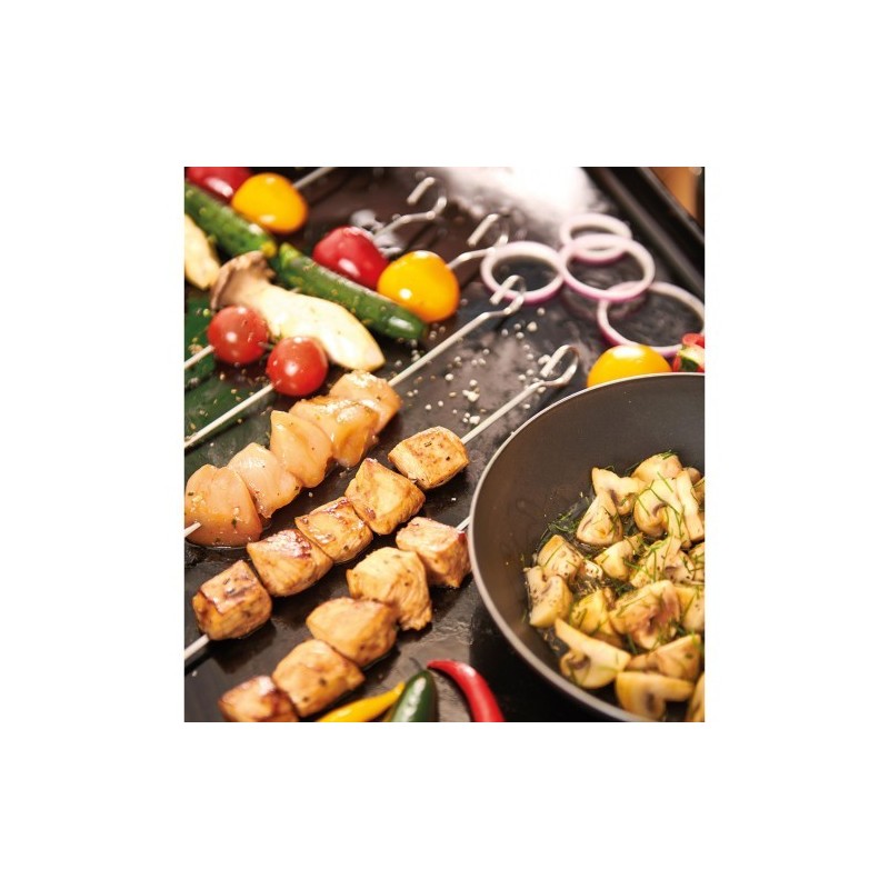 Grâce au fil inox plat, les aliments ne roulent pas sur le pique pour un bon maintien pendant la cuisson.