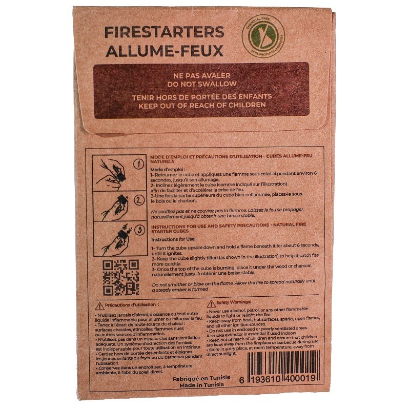 Faciles à utiliser, il suffit d’un seul cube pour démarrer votre feu sans effort. Sans produits chimiques nocifs, ils assurent une combustion propre et sécurisée, pour des moments chaleureux en toute tranquillité.