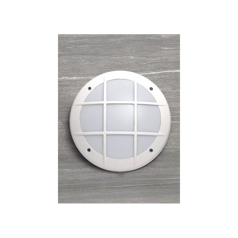 Lampe de cloison ronde avec anneau, paupière ou grille. Fabriqué en résine antichoc, stabilisé aux rayons UV, sans rouille et sans corrosion :
