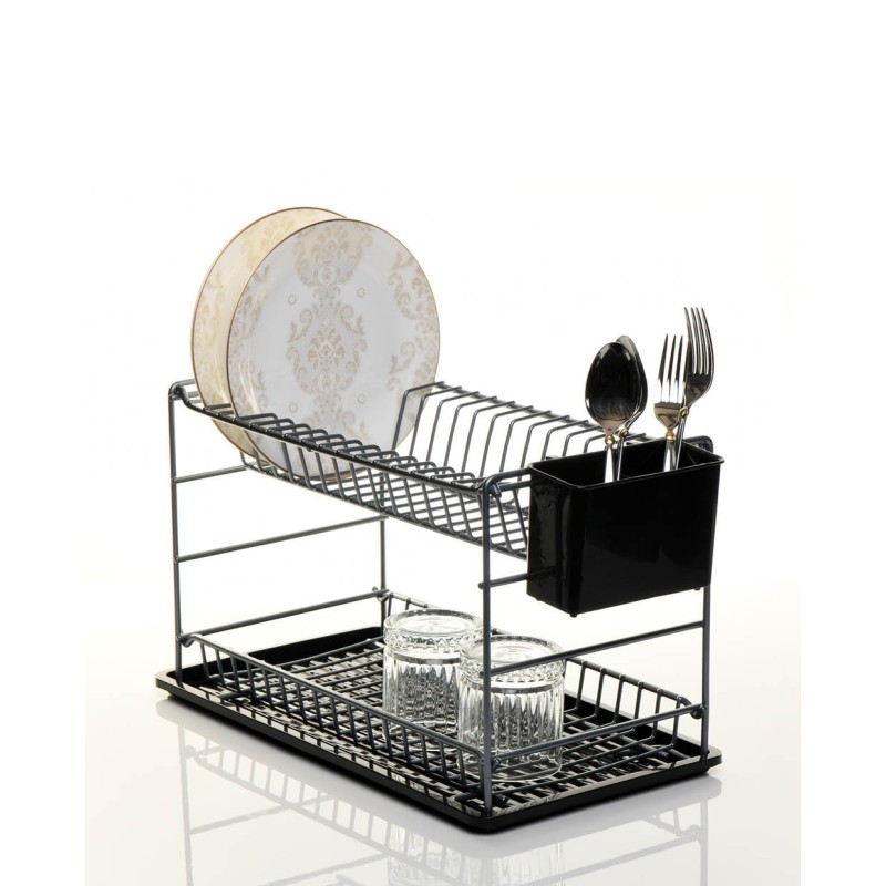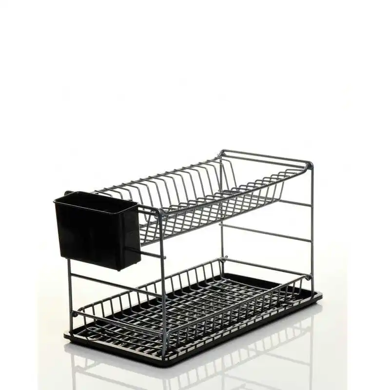 ÉGOUTTOIR À VAISSELLE PORTABLE À DEUX NIVEAUX NOIR AVEC PLATEAU NOIR (50 CM) ZENSAN