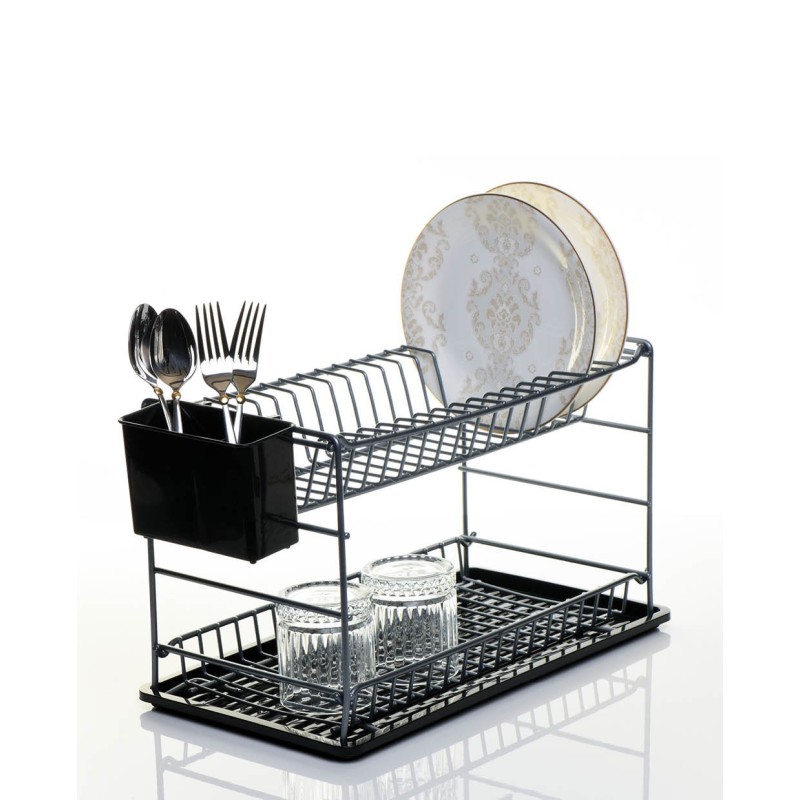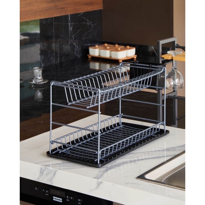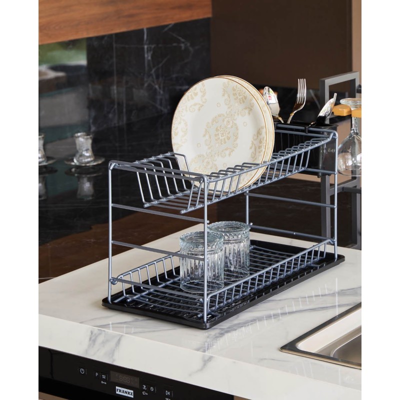 ÉGOUTTOIR À VAISSELLE PORTABLE À DEUX NIVEAUX GRIS AVEC PLATEAU NOIR (50 CM) ZENSAN