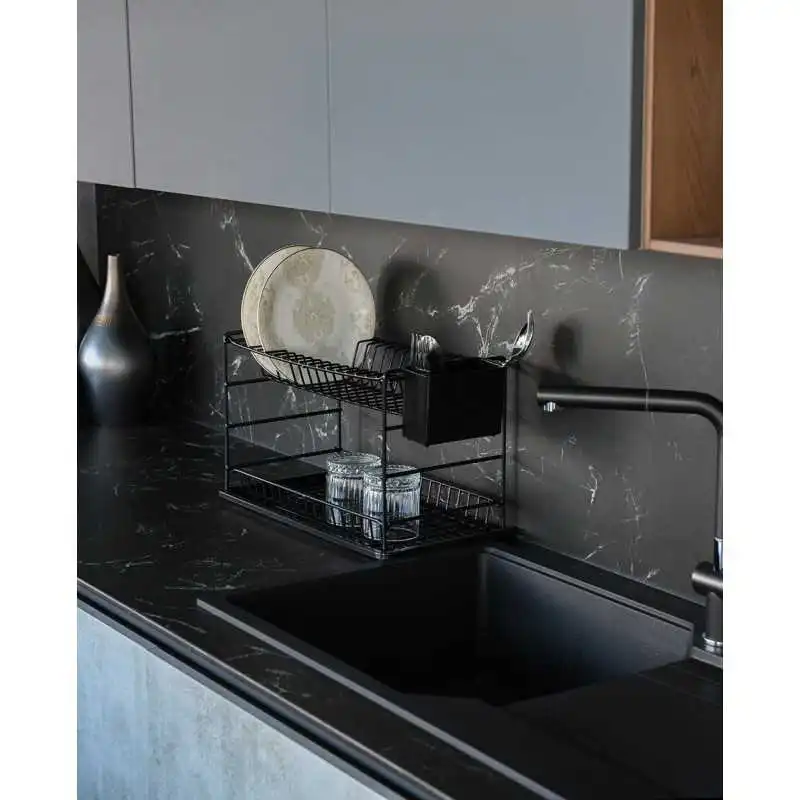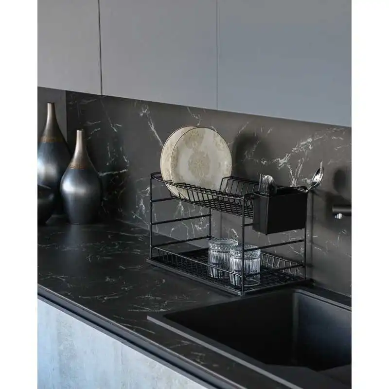 ÉGOUTTOIR À VAISSELLE PORTABLE À DEUX NIVEAUX NOIR AVEC PLATEAU NOIR (50 CM) ZENSAN