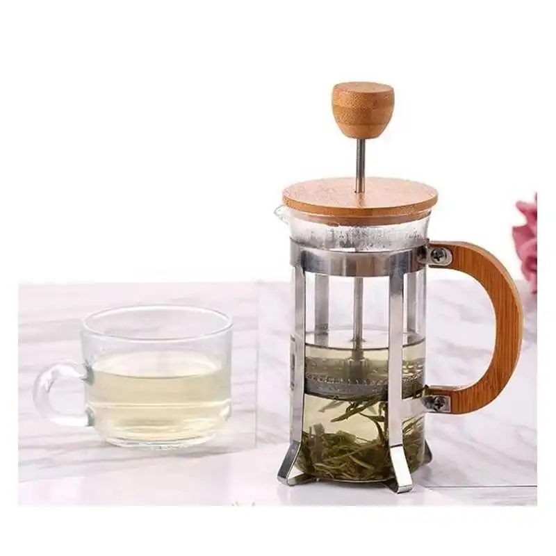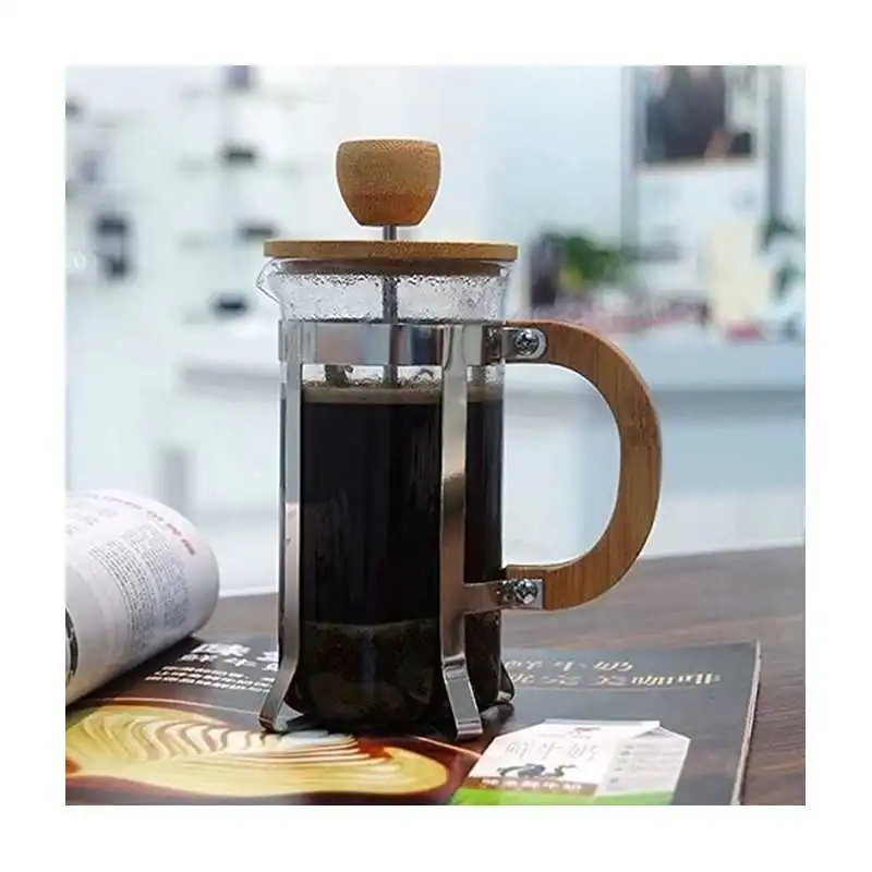 Apportez une touche naturelle et élégante à vos pauses café avec cette cafetière à piston au design moderne alliant verre transparent et bois raffiné.