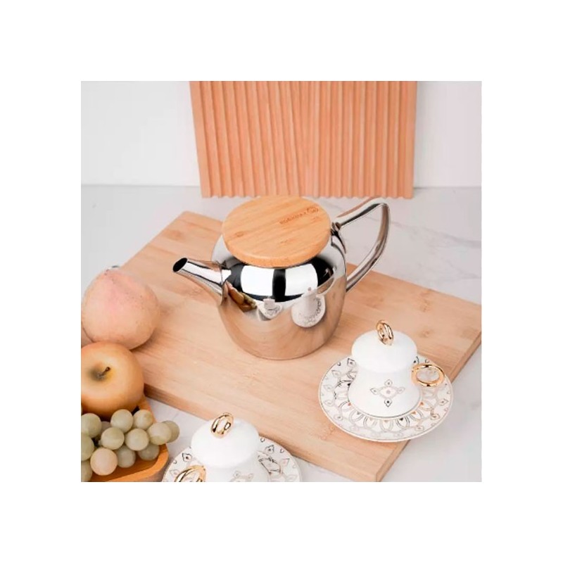 La théière turque moderne avec la poignée en métal est fabriquée en véritable acier inoxydable 18/10 Cr-Ni exclusif de haute qualité et elle est durable.