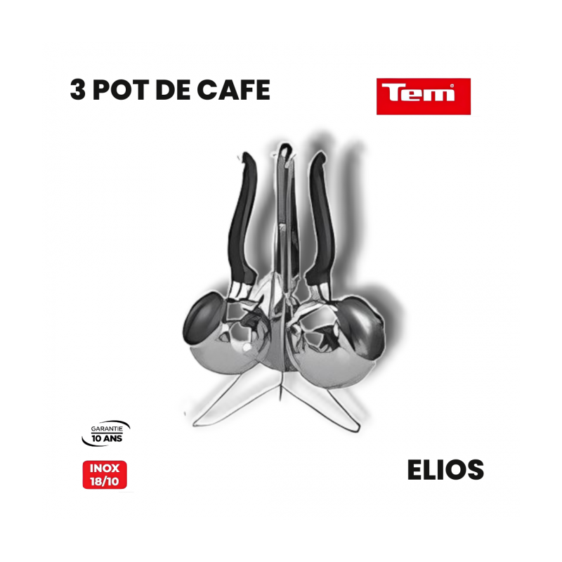SÉRIE DE 3 POT DE CAFÉ ELIOS AVEC SUPPORT EN INOX 18/10 TEM