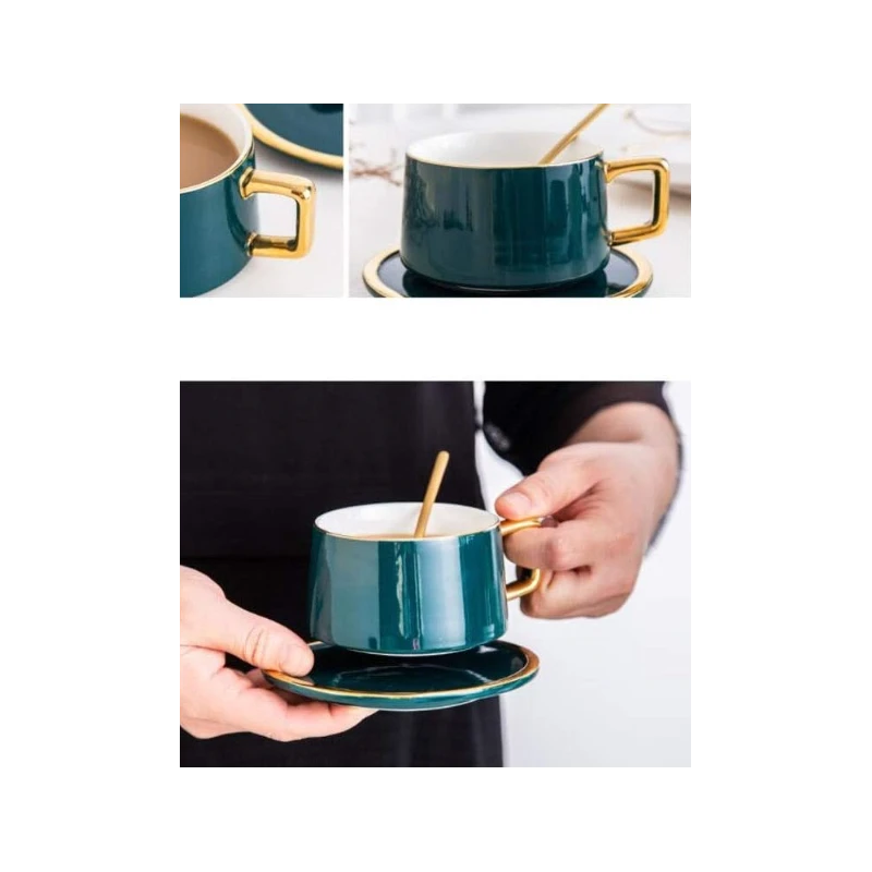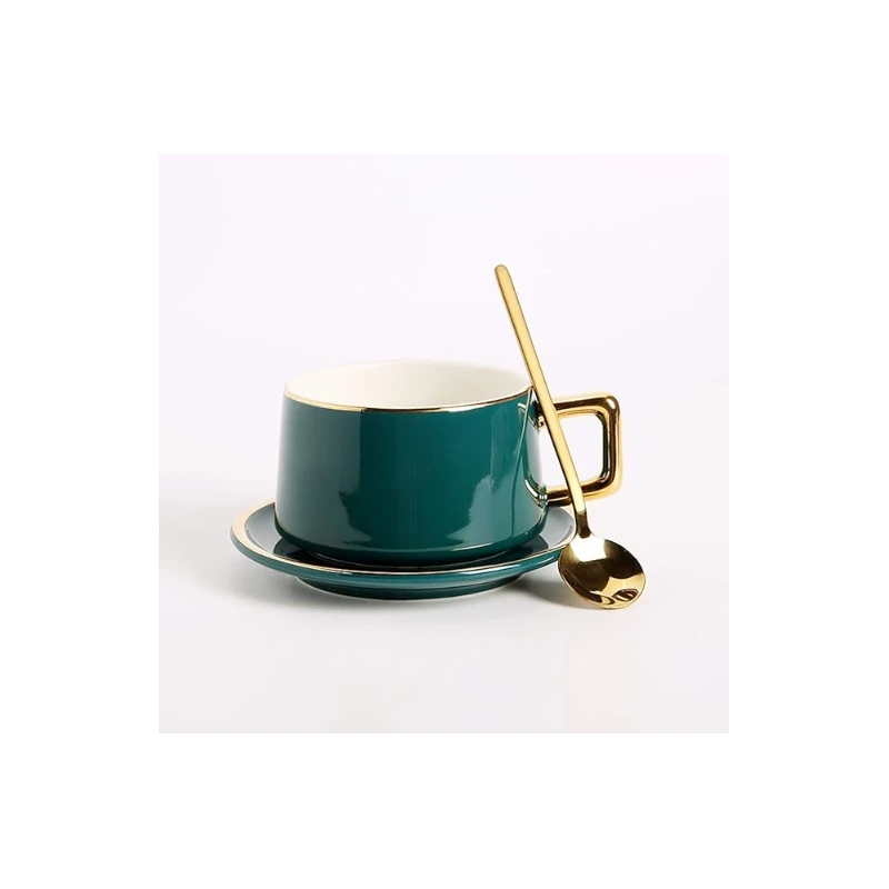 -Tasse à café en céramique exquise avec soucoupe et cuillère, de style européen, tasse à thé simple de l'après-midi, maison, bureau.