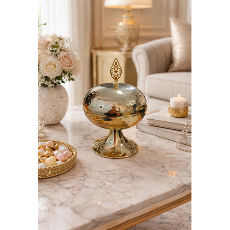 Bonbonnière en métal doré au design élégant Idéale pour la décoration de table, Ramadan, mariages et réceptions Style chic et raffiné.