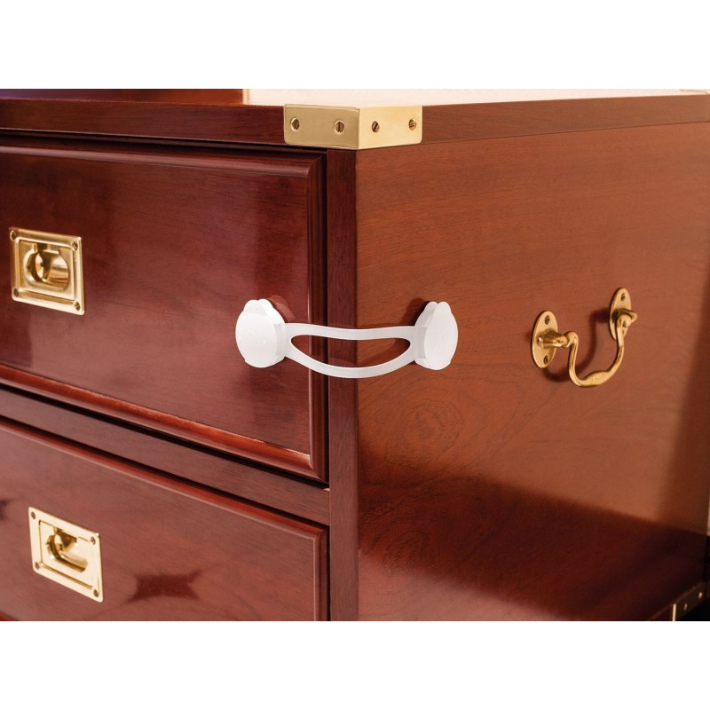 Fermeture sécurité à usage multiple long. Empêche l' ouverture des placards, frigos, toilettes. Adaptable à différents appareils domestiques grâce a sa flexibilité. Matérieau: ABS + PE , Couleur: Blanc