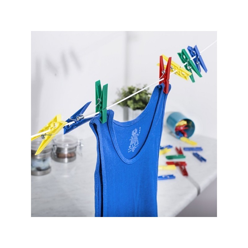 les pinces à linge multicolores sont surtout utilisées pour suspendre le linge sur une corde à linge ou un fil pour le faire sécher à l'air libre, à l'extérieur ou à l'intérieur.