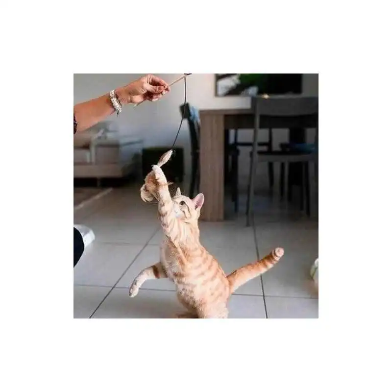 Il est bien connu que les chats sont des animaux qui aiment se divertir, sauter, utiliser les griffes, courir après des objets. Cette canne à pêche, faisant partie des derniers jouets lancés par Ferplast sera un bon passe-temps qui stimulera sans aucun doute l'intérêt de votre ami félin. En bois, ce jouet pour chat ludique avec jouet à plumes synthétiques fera sans aucun doute sauter votre chat. Très agréable grâce aux couleurs naturelles comme le blanc ou brun, il deviendra le passe-temps favori de vos animaux de compagnie.