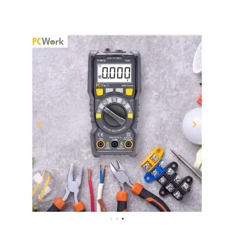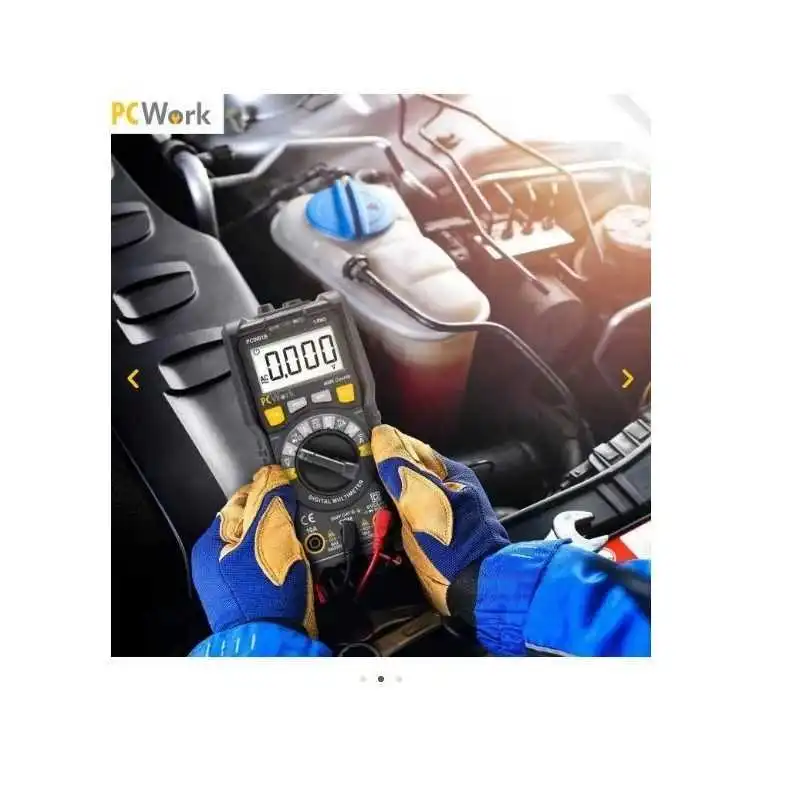 Test NCV (tension sans contact), continuité, batterie (1,5V/9V) et diode.