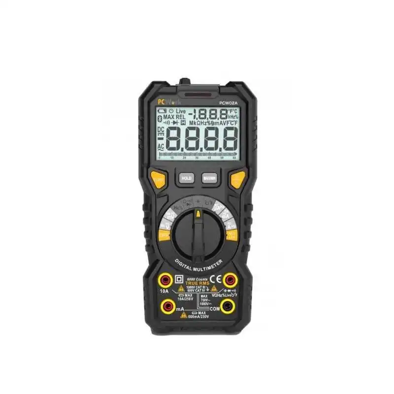 Mesure de la tension, du courant, de la résistance, de la capacité, de la fréquence, du rapport cyclique et de la température en courant alternatif et en courant continu.