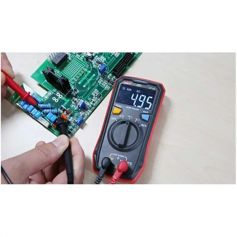 L'UT123 est un multimètre résidentiel de poche conçu pour un usage domestique. La structure compacte le rend facile à tenir dans une main, et l'écran EBTN permet aux utilisateurs d'obtenir des lectures claires à un angle maximum, il est également idéal pour travailler dans des environnements sombres.