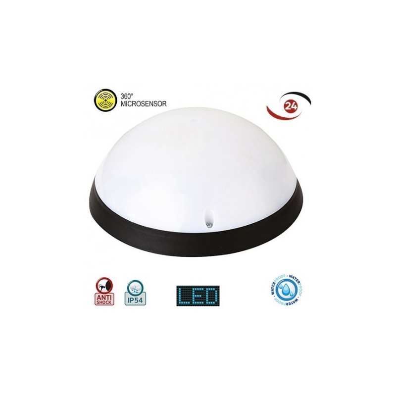 APPLIQUE HUBLOT LED IP54 ROND NOIR AVEC DÉTECTEUR DE MOUVEMENT 12W HOROZ ELECTRIC