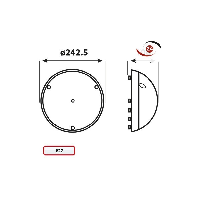 -Dimensions environ : Ø 242,5 mm hauteur 106 mm