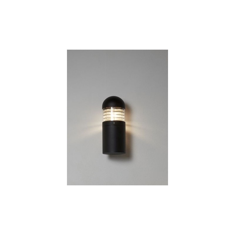 Applique murale extérieure étanche éclairent votre espace de vie, décorent la façade de votre habitation mais sont aussi gages de sécurité et de fonctionnalité. Couleur : Noir Format : Cylindrique Matière : Aluminium et verre Étanche Culot: E27 Dimension : H: 25 cm et D: 10cm