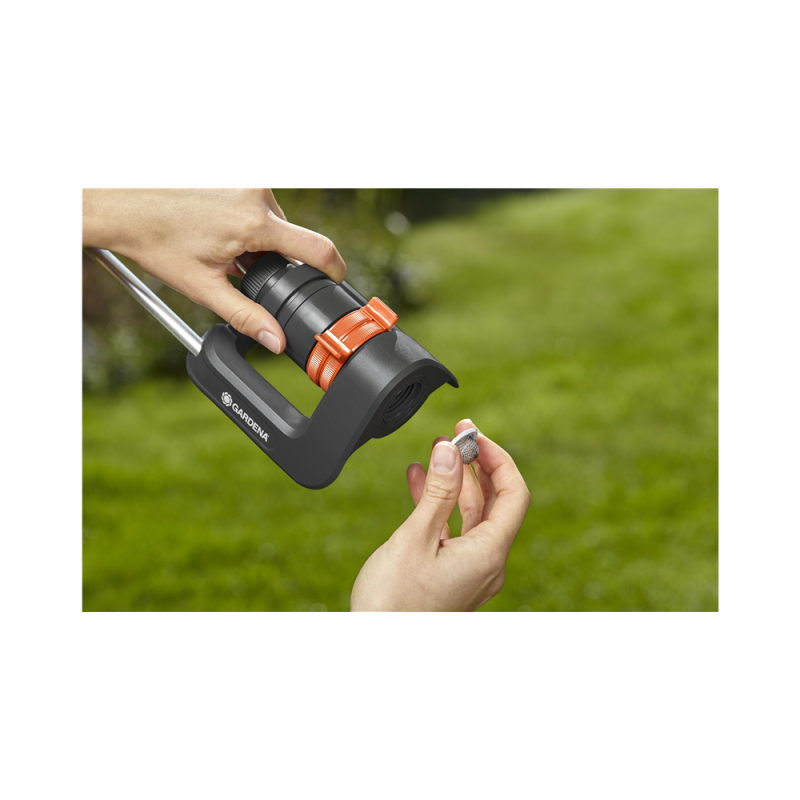 Cet arroseur GARDENA veille à ce que votre pelouse et vos plantes soient arrosées de manière uniforme et précise sans formation de flaques.