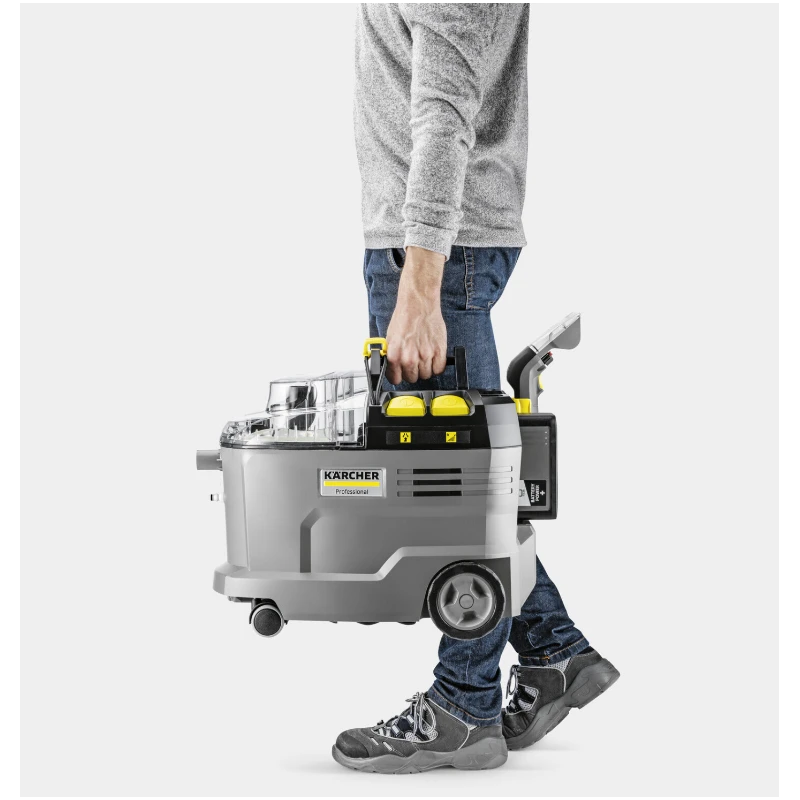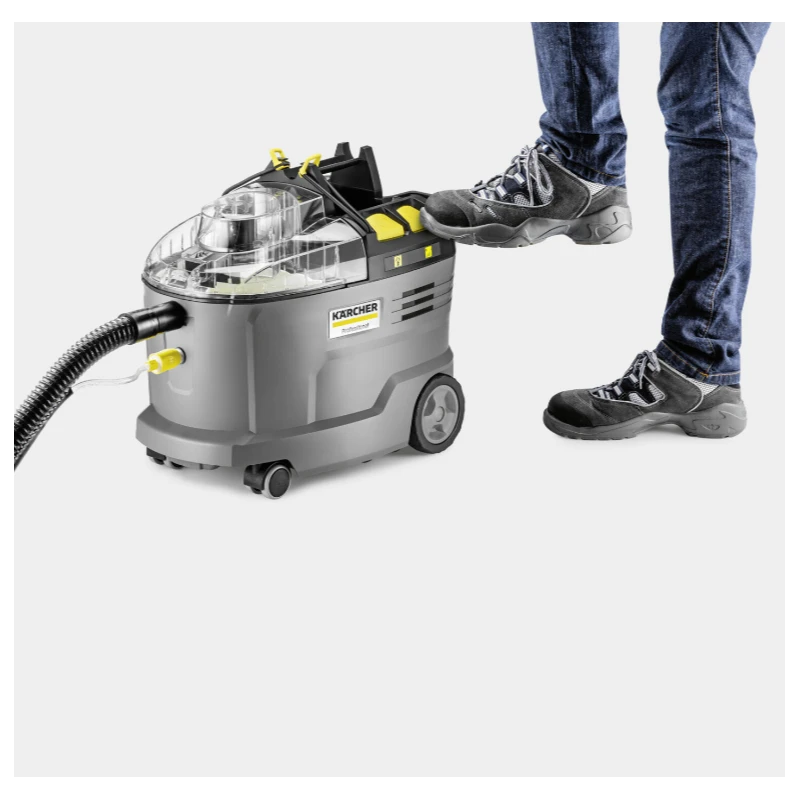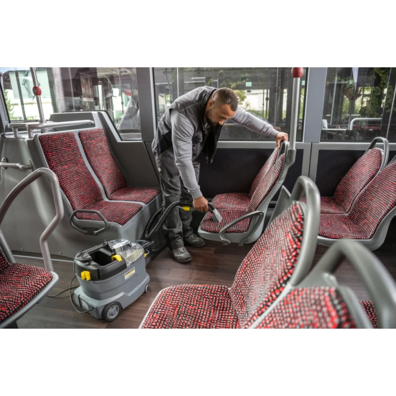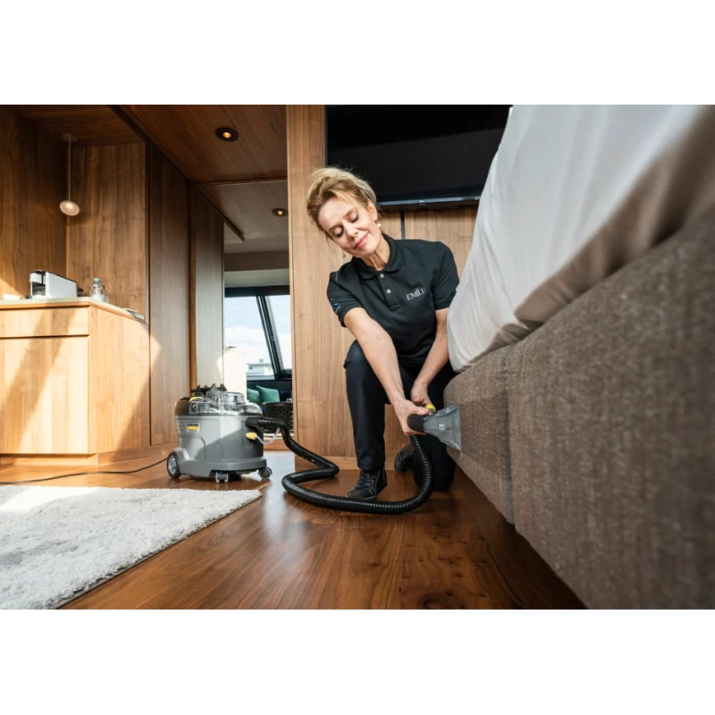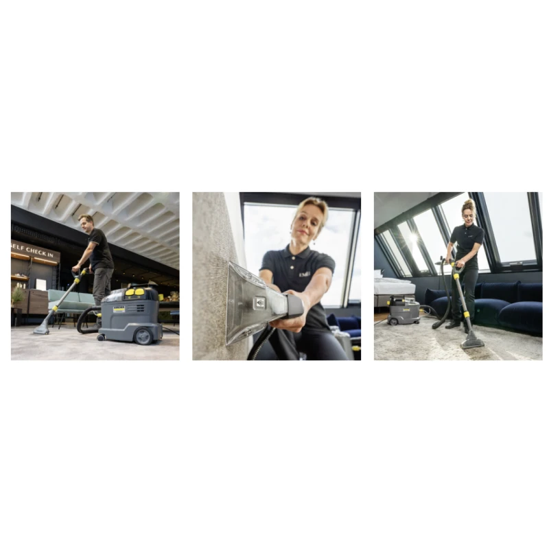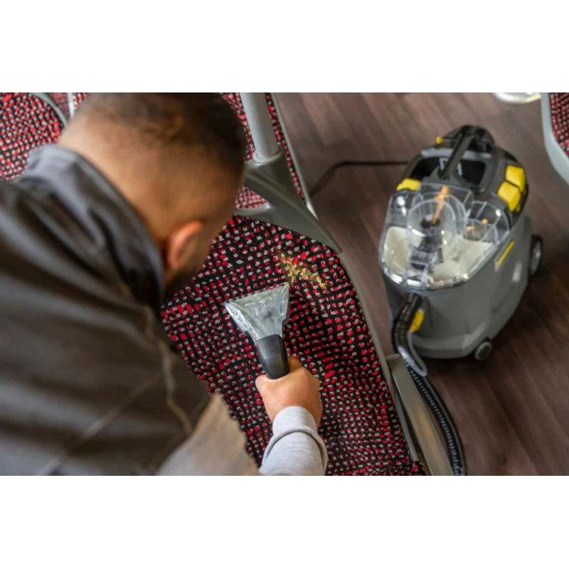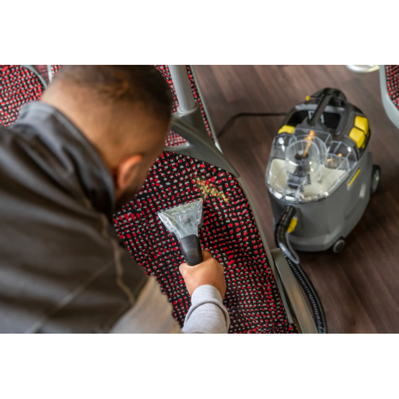 Robuste, durable, efficace : l'injecteur-extracteur Puzzi 8/1 de Kärcher s'illustre par ses résultats de nettoyage exceptionnels et hygiéniques ainsi que par sa rentabilité élevée lors du nettoyage des capitonnages et du détachage des surfaces textiles.