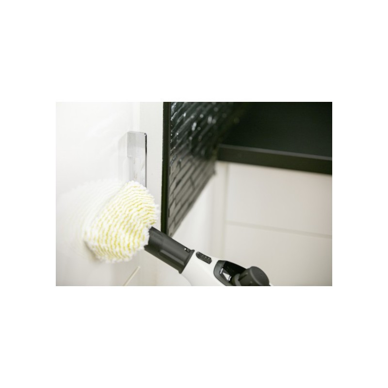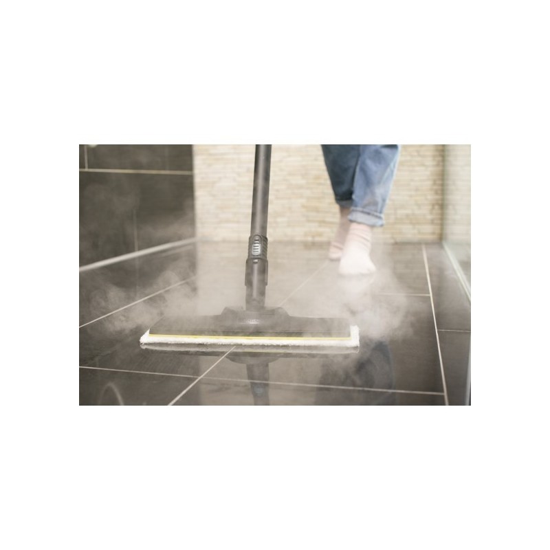 Le balai vapeur 2 en 1 compact Kärcher SC 1 EasyFix (avec kit de nettoyage des sols) peut être utilisé dans toute la maison et nettoie les surfaces sans aucun produit chimique