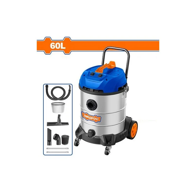 Grâce à son double moteur puissant (2×1200W) et sa cuve inox de 60 litres, L’aspirateur WADFOW WVR5A60 permet d’aspirer efficacement poussières, débris et liquides