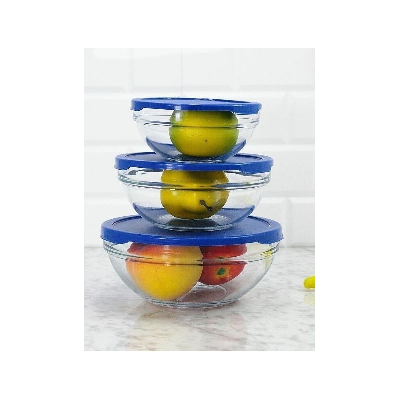 -Le lot de boites Pasabahce se compose de trois boites rondes.