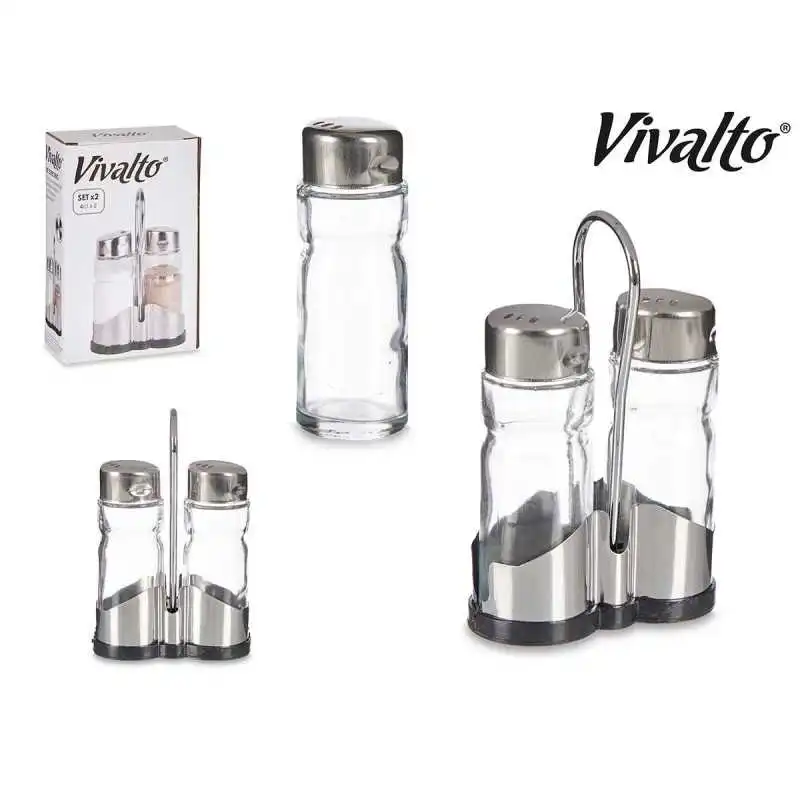 SALIÈRE ET POIVRIÈRE AVEC SUPPORT EN ACIER INOXYDABLE VIVALTO