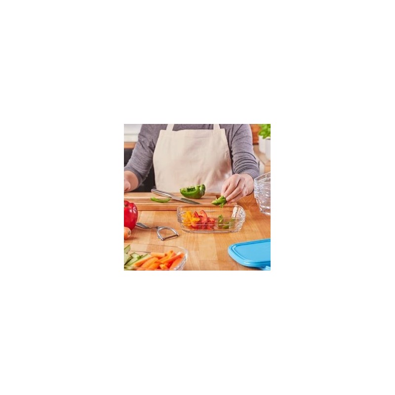 -Cette boîte de conservation de 1,7 L convient à toutes les utilisations : pour conserver les restes des repas au réfrigérateur pour stocker des aliments durablement au congélateur pour ranger et conserver des aliments secs dans les placards pour transporter sans risque de casse votre déjeuner au bureau pour réchauffer rapidement votre repas au micro-ondes entre deux réunions (sans le couvercle) pour préparer puis présenter une salade composée sur votre table