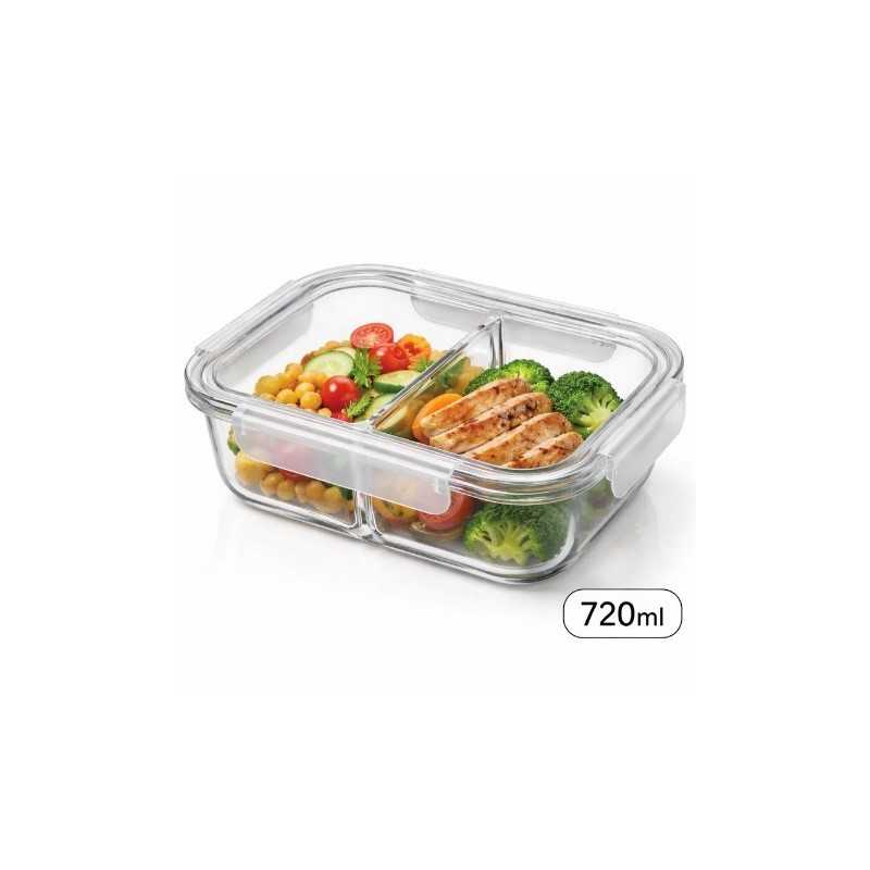 BOÎTE DE CONSERVATION À 2 COMPARTIMENTS RECTANGULAIRE EN VERRE AVEC COUVERCLE 720CL LAV
