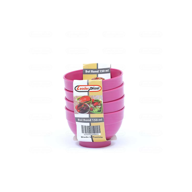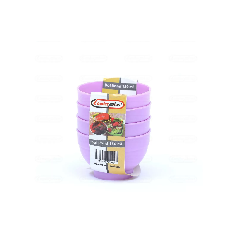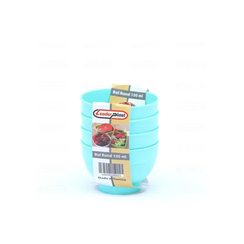 LOT DE 4 MINIS BOLS RONDS EN PLASTIQUE 150 ML COULEURS LEADERPLAST