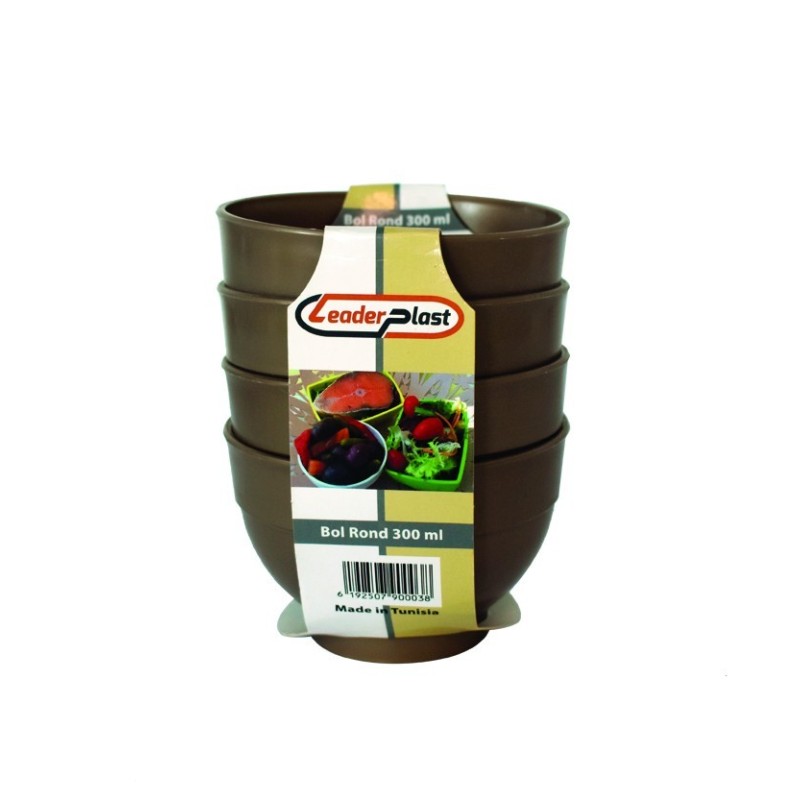 LOT DE 4 BOLS RONDS EN PLASTIQUE 300 ML COULEURS LEADERPLAST
