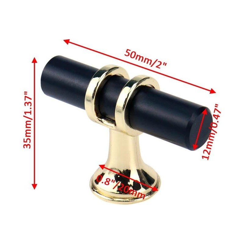 BOUTON DE MEUBLE MODÈLE T EN ALLIAGE DE ZINC NOIR ET DORÉ 5*3.5CM