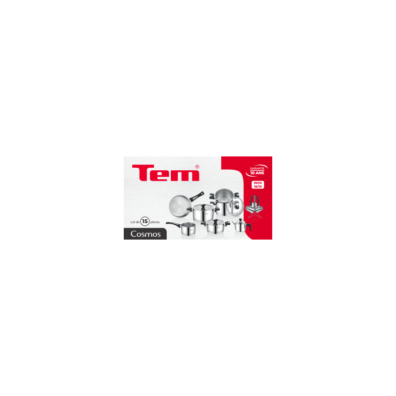 BATTERIE DE CUISINE 15 PIÈCES COSMOS EN INOX 18/10 TEM