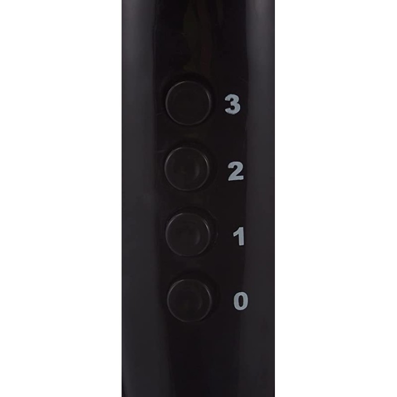 -Option de vitesse à 3 niveaux Corps de ventilateur mobile de 70° vers le haut et vers le bas Oscillation de 90° à gauche et à droite Maximum 132 cm réglable Système de protection contre la surchauffe