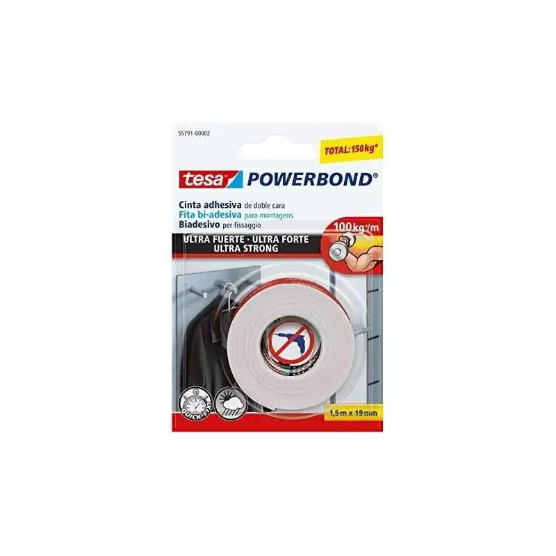 ADHÉSIF DOUBLE FACE ULTRA FORT POWERBOND 19MMx1,5M TESA