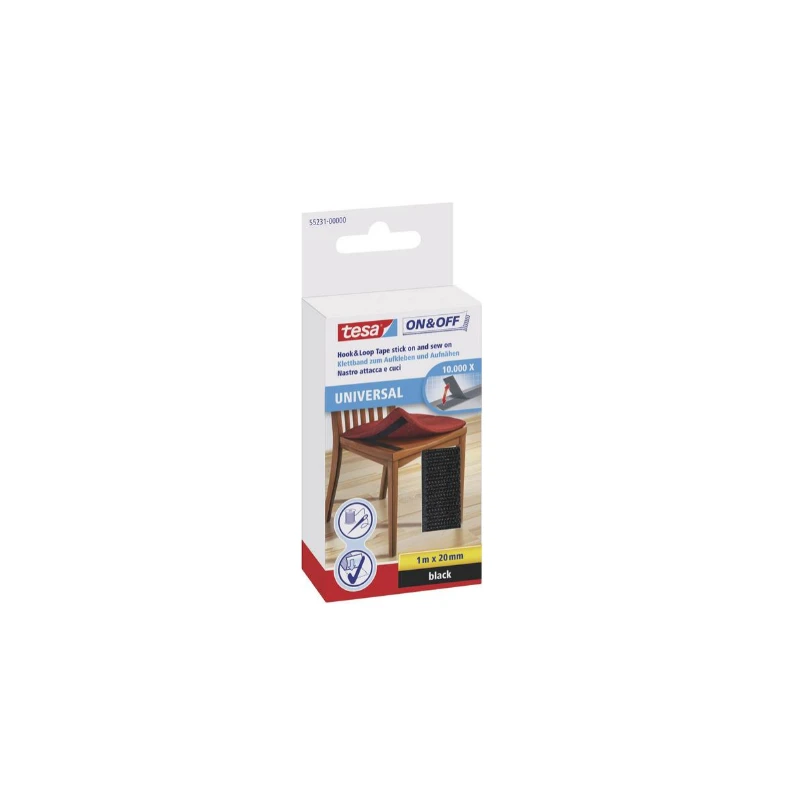 Tesa On Off Bande auto-agrippant à coudre et à coller est une technologie de fixation conçue pour fixer des textiles aux surfaces dures.
