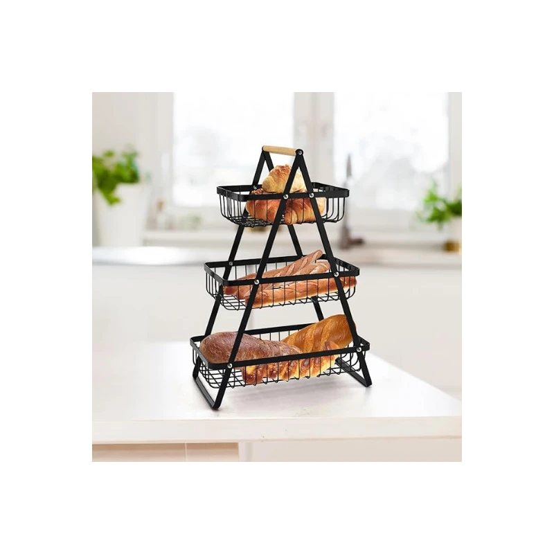 Découvrez le Support à Fruits en Métal Noir 3 Étages, un accessoire moderne et fonctionnel qui allie style et praticité.