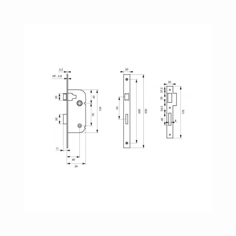 Nom du produit : SERRURE ENCASTRABLE À CONDAMNATION 719 MRGROUP