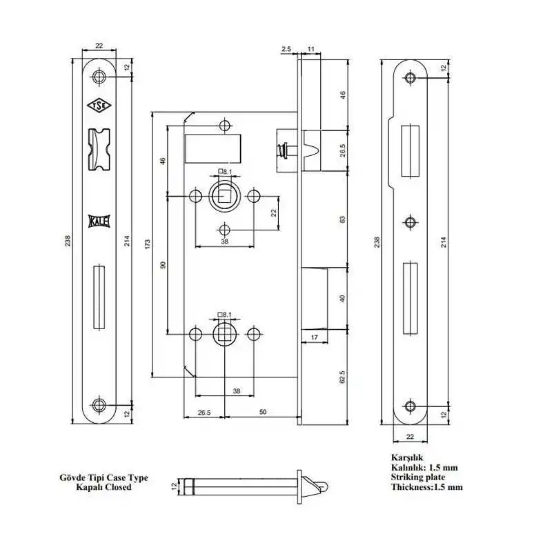 SERRURE ENCASTRABLE À CONDAMNATION 159T50 KALE KILIT