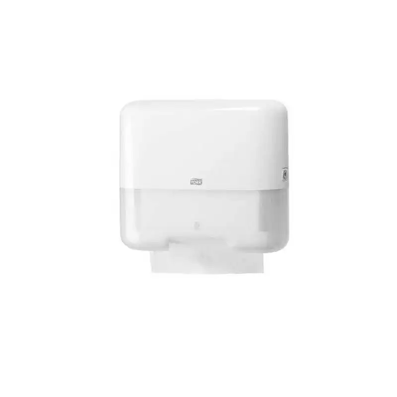 Distributeur TORK mini pour serviettes pliantes en zig-zag et emplacement, Le distributeur TORK pour chiffons et serviettes pliables en zig-zag H3 dans la conception d'élévation convient aux endroits où le confort et l'hygiène sont importants.