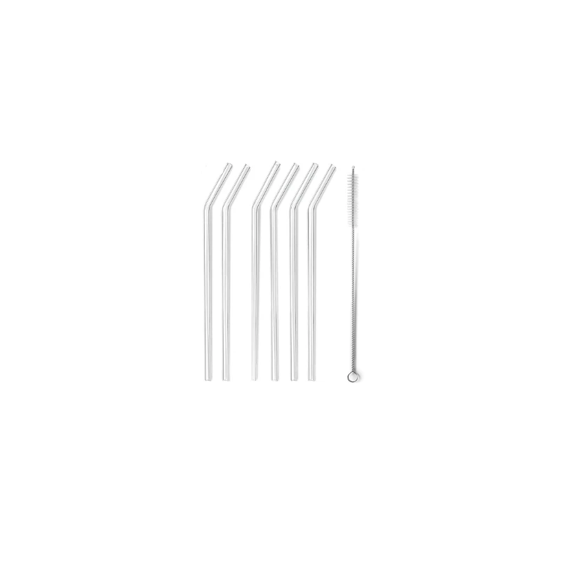 -Set de 6 pailles courbées en verre, durables et offrant une utilisation sécurisée.