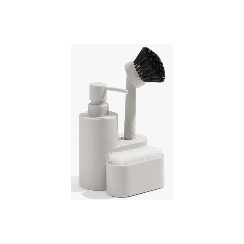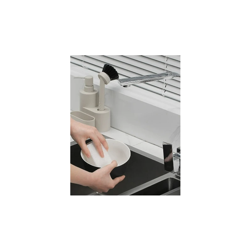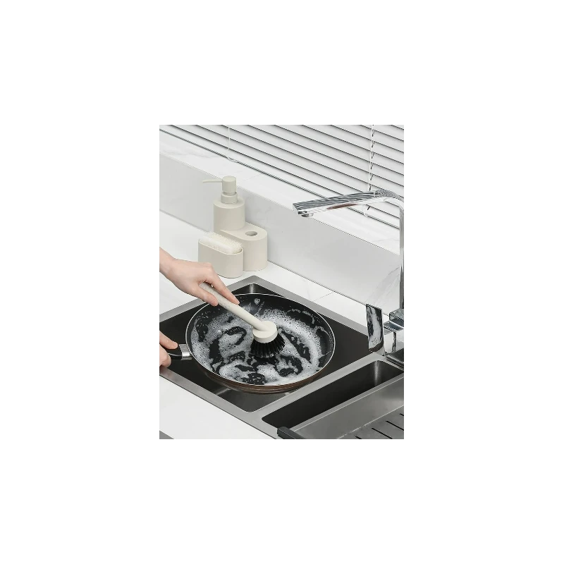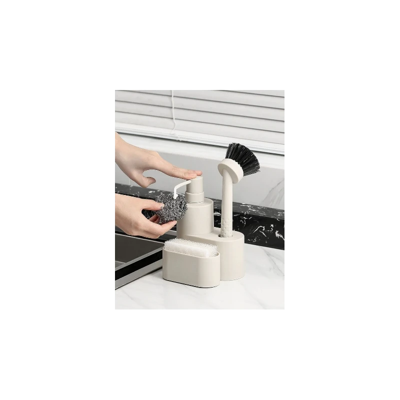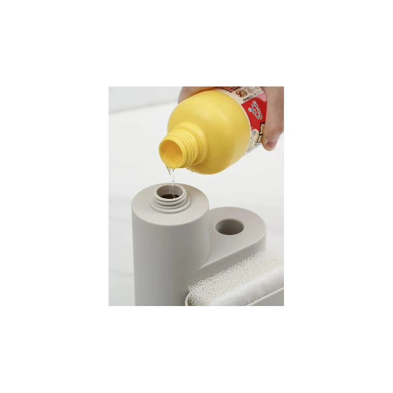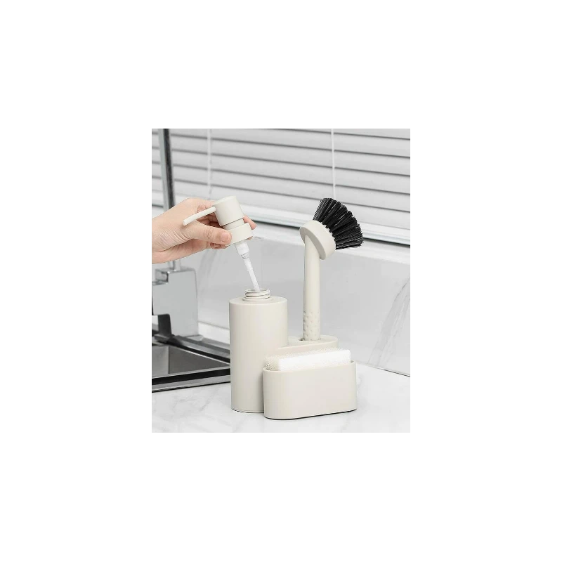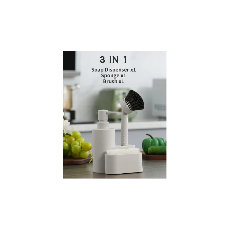 -3 en 1 : distributeur de savon avec éponge et brosse 3 en 1 pour une utilisation en cuisine, facile à remplir de savon liquide, plus de gouttes salissantes, pratique à utiliser