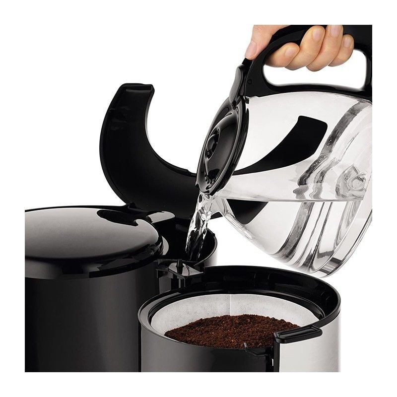 L'utilisation vous sera également facilitée par le porte-filtre pivotant et amovible, pour un remplissage plus confortable du café, ainsi que l'indicateur de niveau d'eau visible à l'avant.