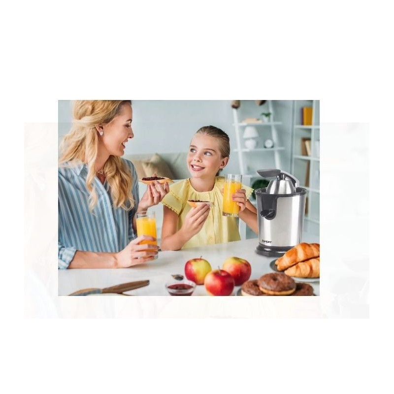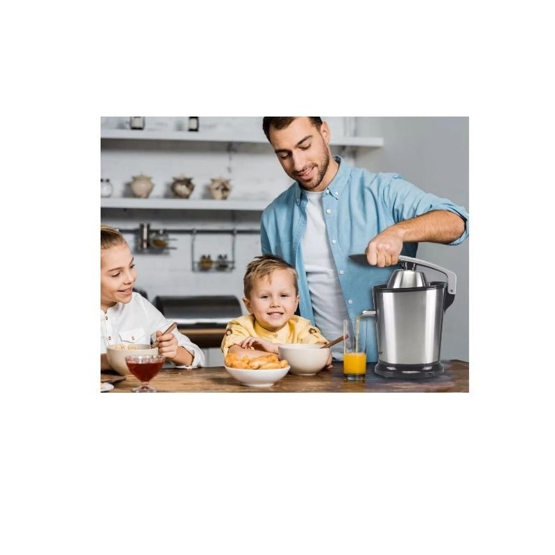 - Presse-agrumes électrique avec corps en acier avec levier pour faciliter l'essorage.