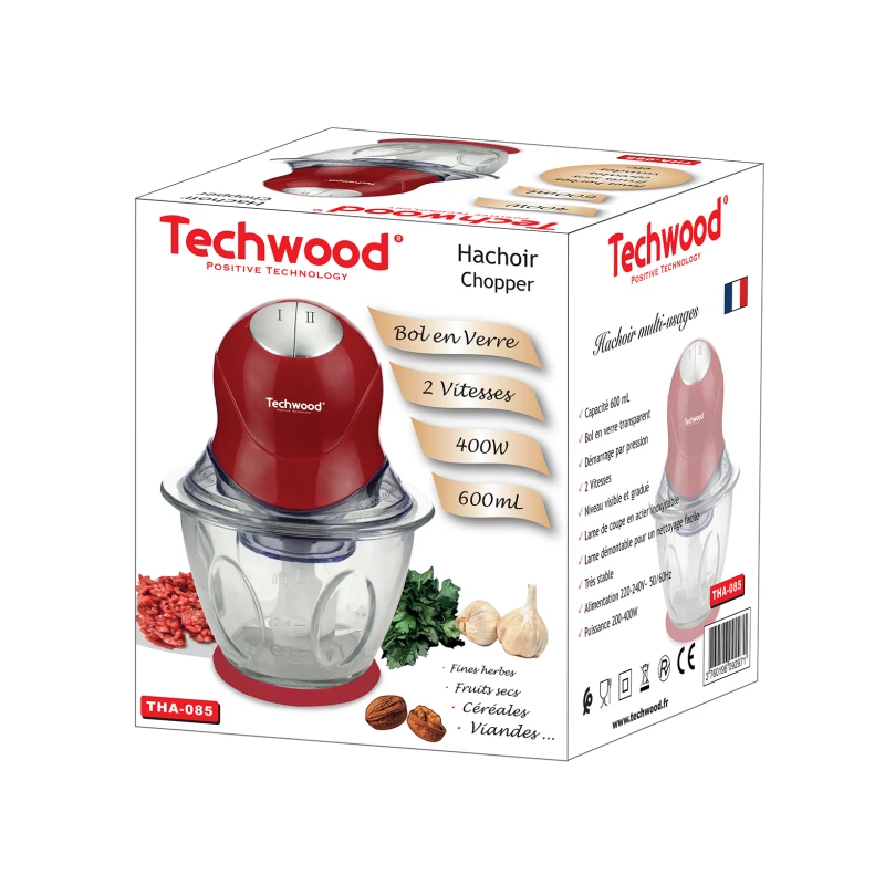 MINI HACHOIR BOL EN VERRE THA-085 400W ROUGE TECHWOOD