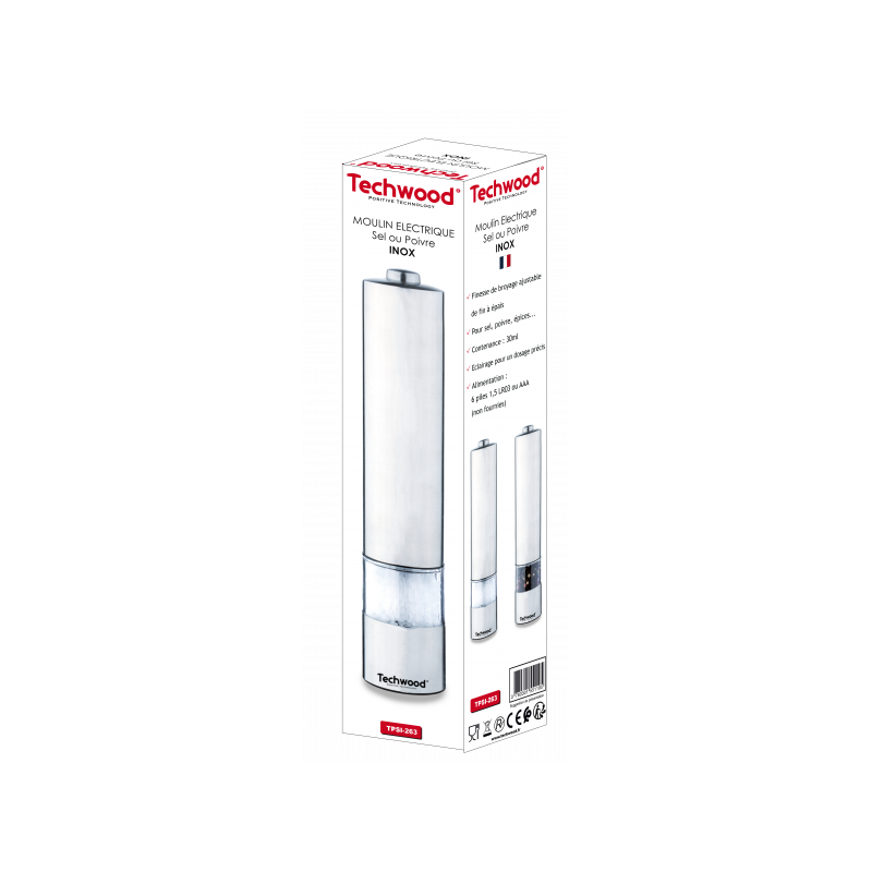MOULIN ÉLECTRIQUE SEL ET POIVRE EN INOX TECHWOOD
