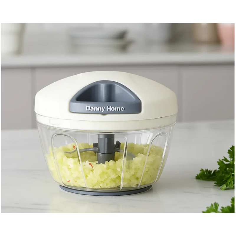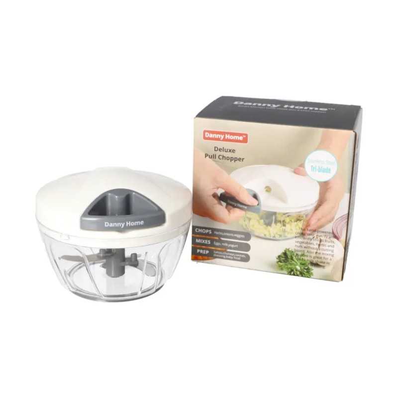 Le Hachoir Manuel à Corde Deluxe Danny Home permet de hacher rapidement vos légumes, herbes et fruits grâce à ses 3 lames inox et son mécanisme à tirette.