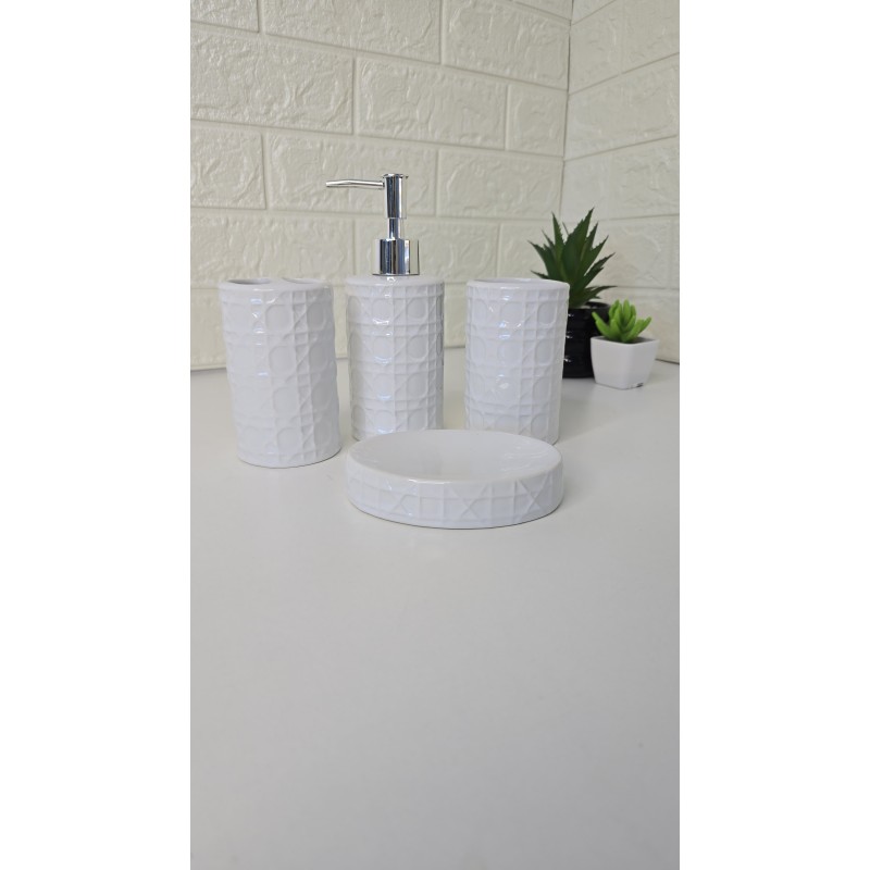 -Transformez votre salle de bain en un espace élégant et moderne avec cet ensemble de 4 accessoires en céramique.