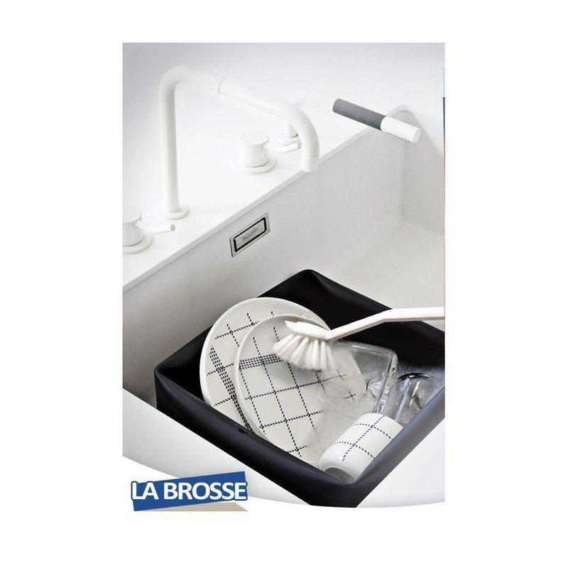 Avec un petit manche ergonomique et des poils rigides. Elle est idéale pour laver les assiettes, les verres et les ustensiles.