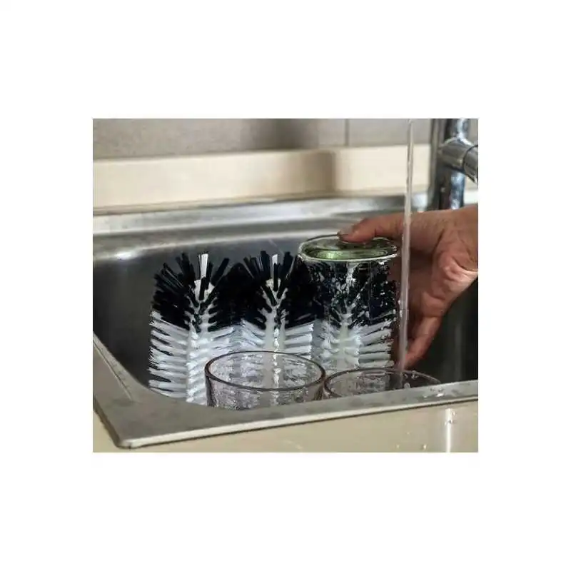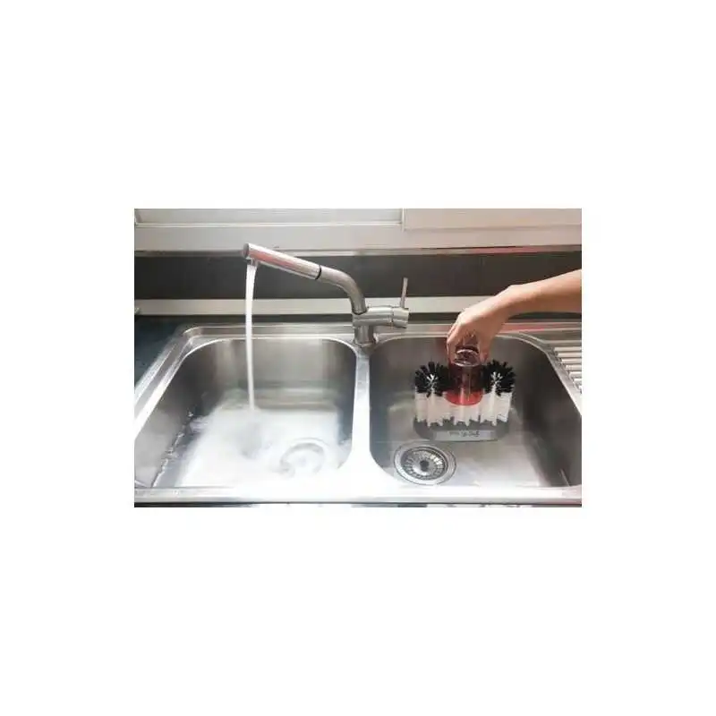 -Les 3 brosses sont très efficaces pour nettoyer par simple rotation et en un laps de temps réduit simultanément l'intérieur et l’extérieur des longs verres