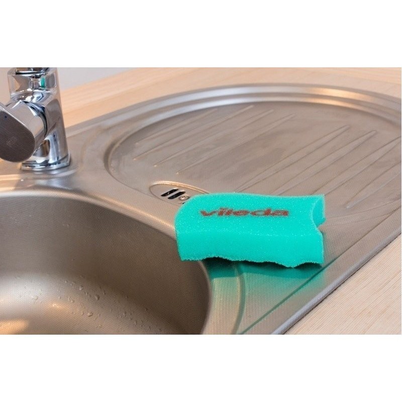 La face abrasive de l’éponge est conçue sur la base d’une technologie brevetée. Elle décolle les saletés et les élimine des surfaces délicates, en les laissant parfaitement propres. L’éponge ne laisse aucune rayure. Cependant, il est recommandé de la tester préalablement sur une surface dissimulée.